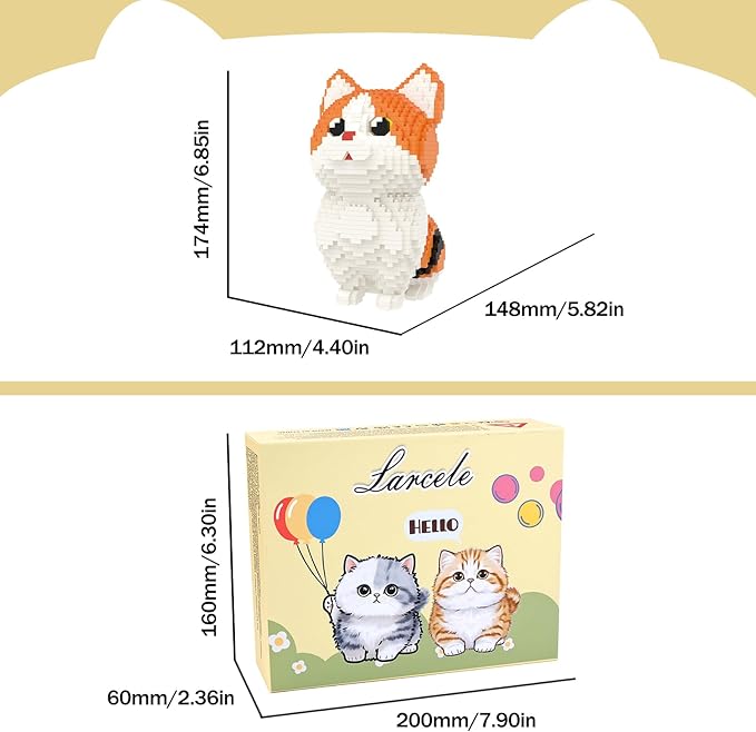 Larcele Micro Building Blocks Set, DIY Mini Building Toy Bricks for Age Over 12 Years, 1296 Pieces KLJM-05 (Munchkin Cat-Orange)