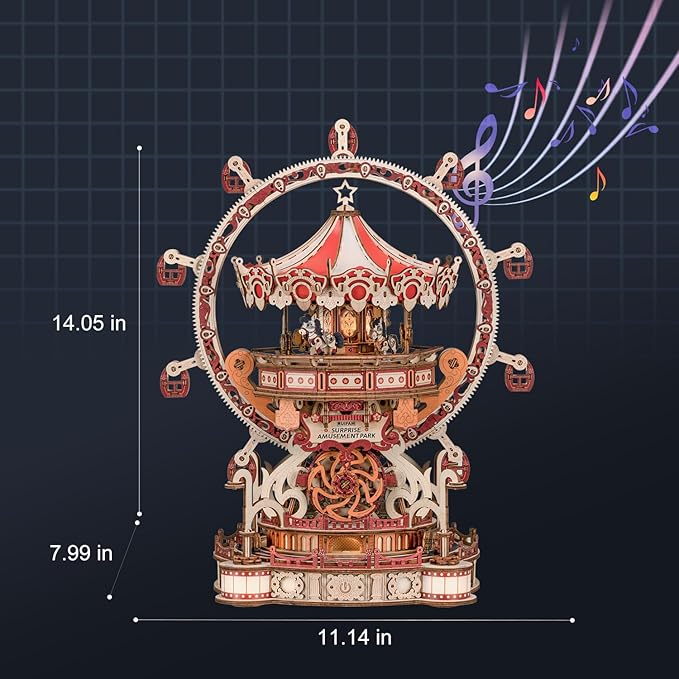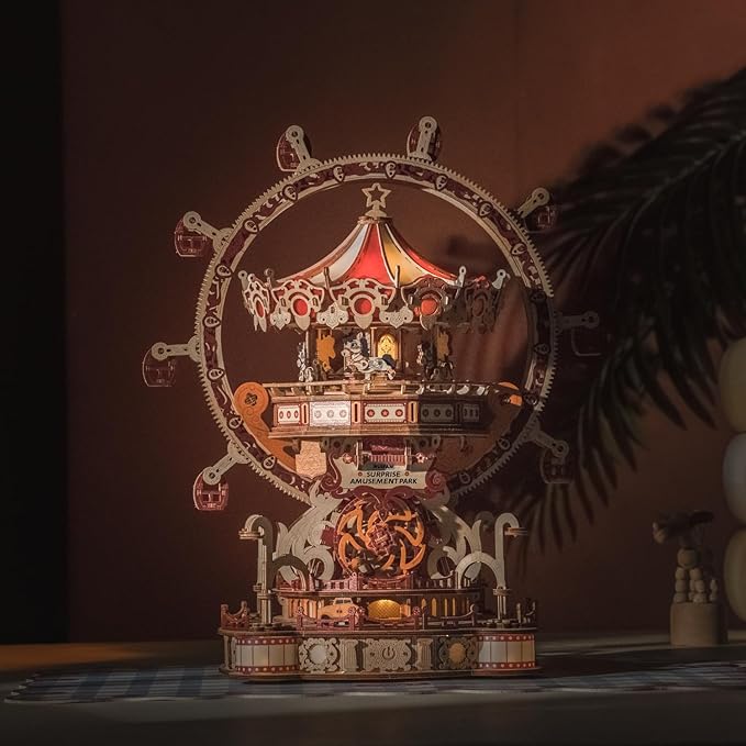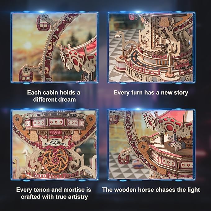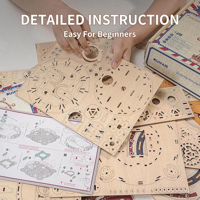 - [RUIFAM 3D Wooden Puzzle | Product Features]: This exquisite wooden puzzle consists of 771 precisely cut parts, and once assembled, it delivers an unparalleled sense of accomplishment. It takes the amusement park as its core inspiration, abstracting classic attractions likecarousels and Ferris wheels into modular building block components infused with the dynamic aesthetics of music boxes.Through intricate assembly, users can not only construct unique playground landscapes but also breathe kinetic life intothem.