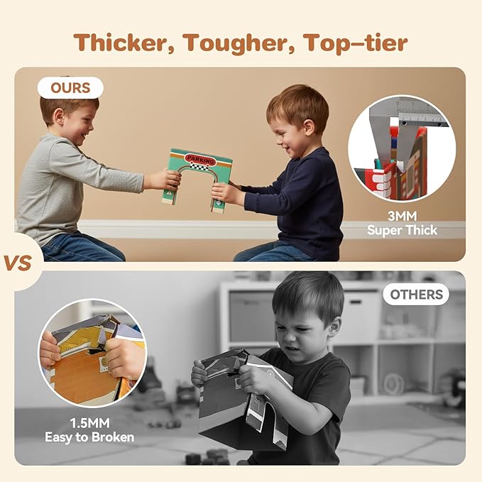 - TRACK EXPANSION SET: Includes 4 straight tracks, 4 curved tracks and checkered flags; children can design custom race courses or integrate with community buildings to create mini-town layouts, stimulating imaginative play scenarios and spatial reasoning skills
