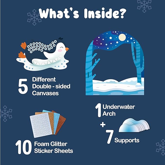 - DIY MOSAIC GLITTER ART KIT: Let kids explore their creativity with 750+ 3D glitter foam stickers to decorate 5 adorable winter animals. Spark imagination and keeps little hands busy with this fun DIY craft.