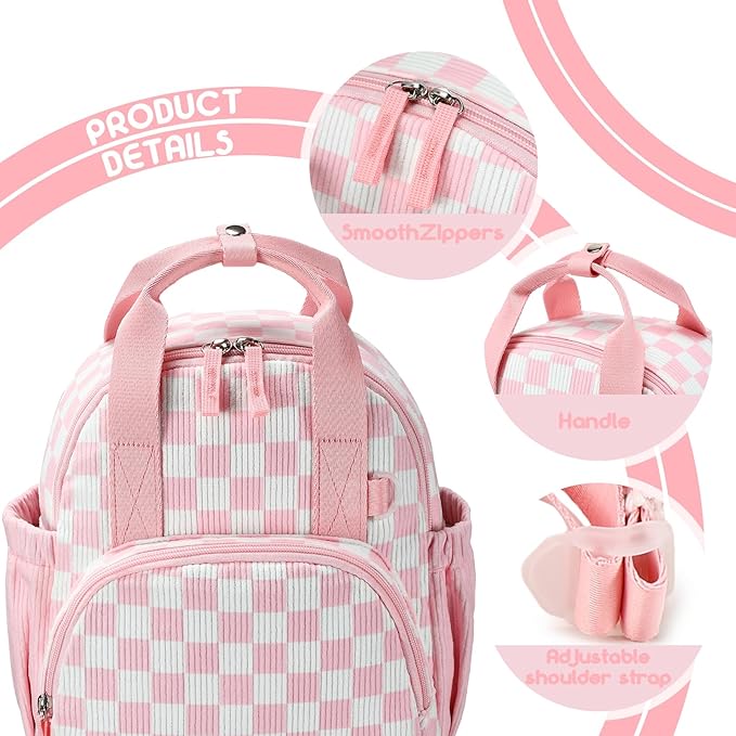 - 【Spacious & Practical Storage:】 Despite its small size, the mini backpack offers ample storage with a main compartment and multiple smaller pockets. Convenient with two easy-access side pockets, perfect for packing lunch, snacks, a water bottle, small toys and more.