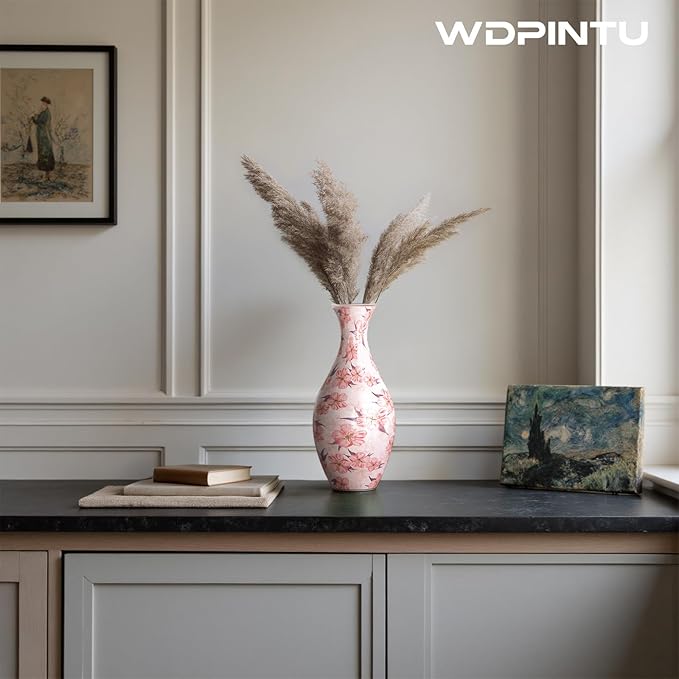 3D Puzzle with Pink Floral Pattern, DIY Decorative Vase for Home & Gift