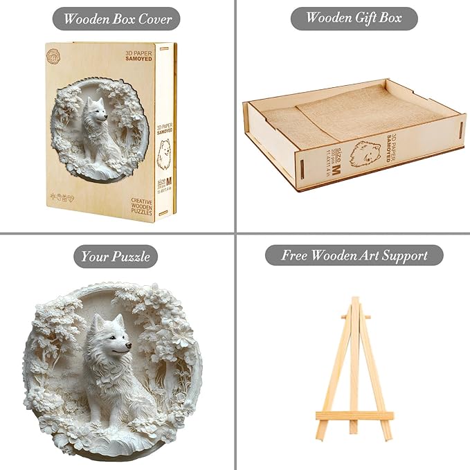 - [High-Quality Materials] - This 3D paper samoyed shaped jigsaw puzzle is made of high quality natural wood, safe and durable. The wooden puzzle is a colorful puzzle with clear and vibrant images that won't fade over time. Advanced laser cutting technology gives the adult puzzles very smooth edges and a very comfortable feel, protecting your hands from injury.