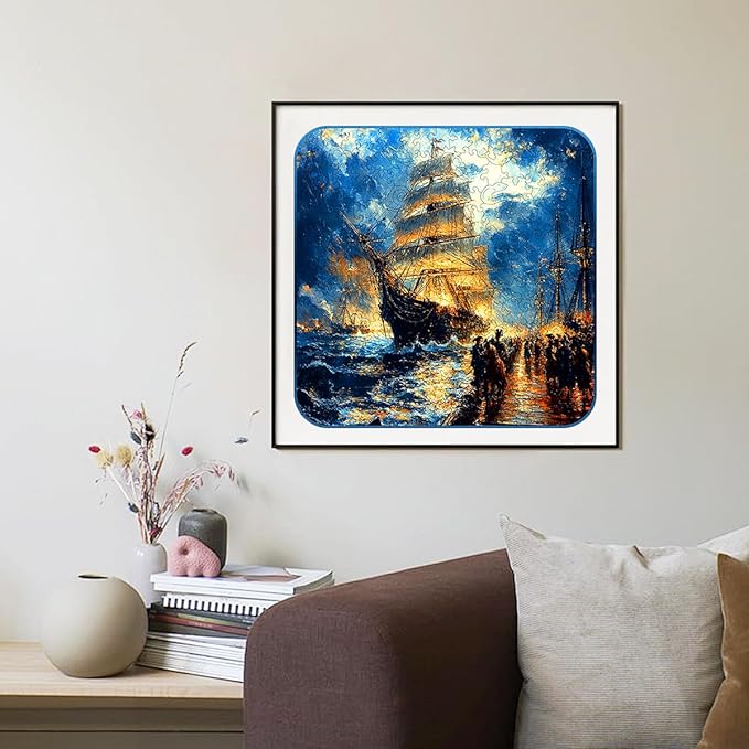 Wooden Jigsaw Puzzle, 200-500 Pieces Unique Shape Animal Puzzle, for Adults & Kids, Birthday Gift Family Game, Decorative Puzzle, Unique Gift (Midnight Pirate, 200 PCS)